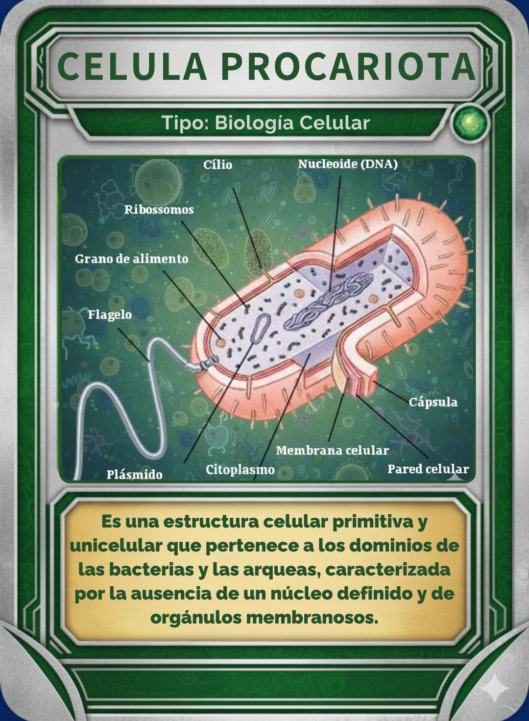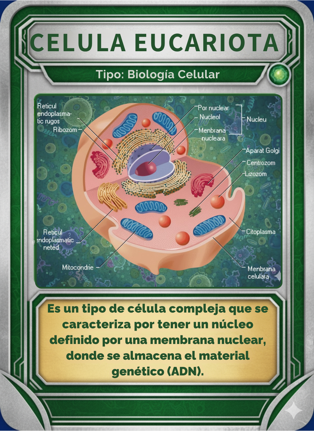 Tarjetas de célula eucariota y procariota → Modelo 3D interactivo con orgánulos. Los estudiantes pueden explorar cada componente celular en 3D y comprender su función.